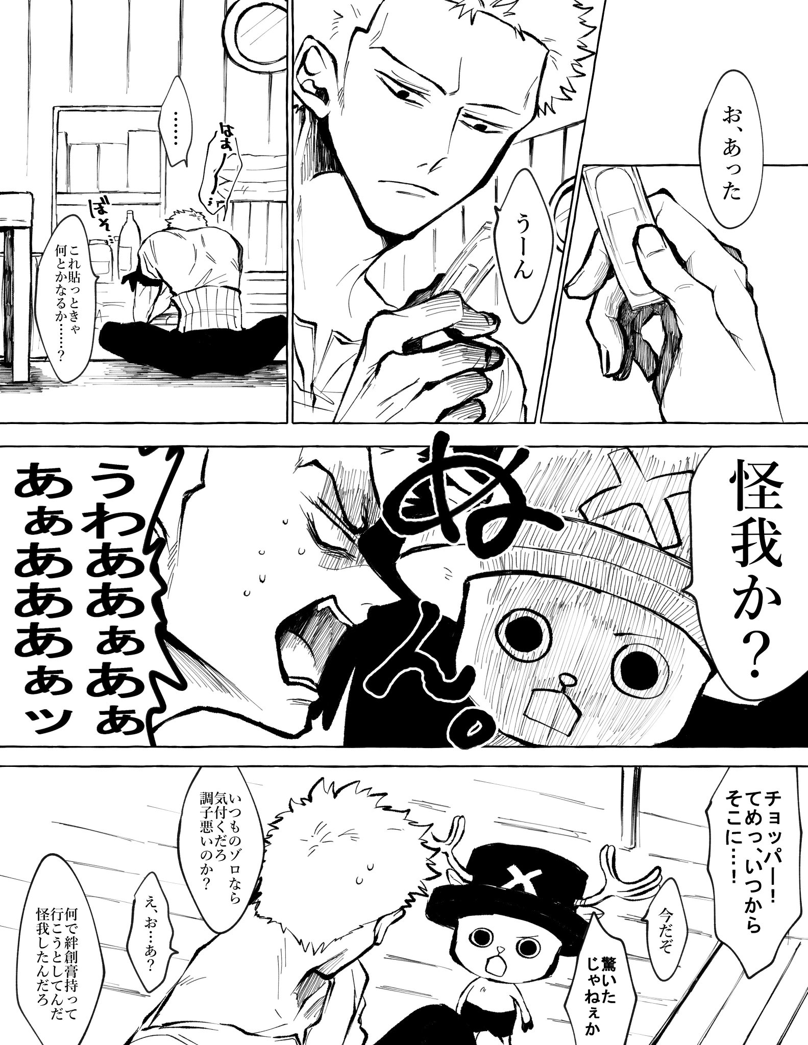 ひよ子 も 怪我の経緯からゾロが気づくまでの視線の動きからチョッパーに見てもらうまでのゾロの押し方までほんっっっっっっっっとにツボです ドストライクです こんな幸せがあっていいのか 朝から元気になりました